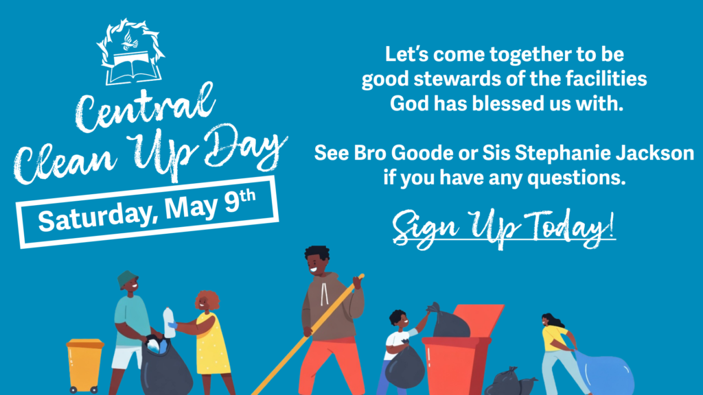 You can sign up for Clean Up Day at the Admin office. If you have any questions, please see Bro. Goode or Sis. Stephanie Jackson.