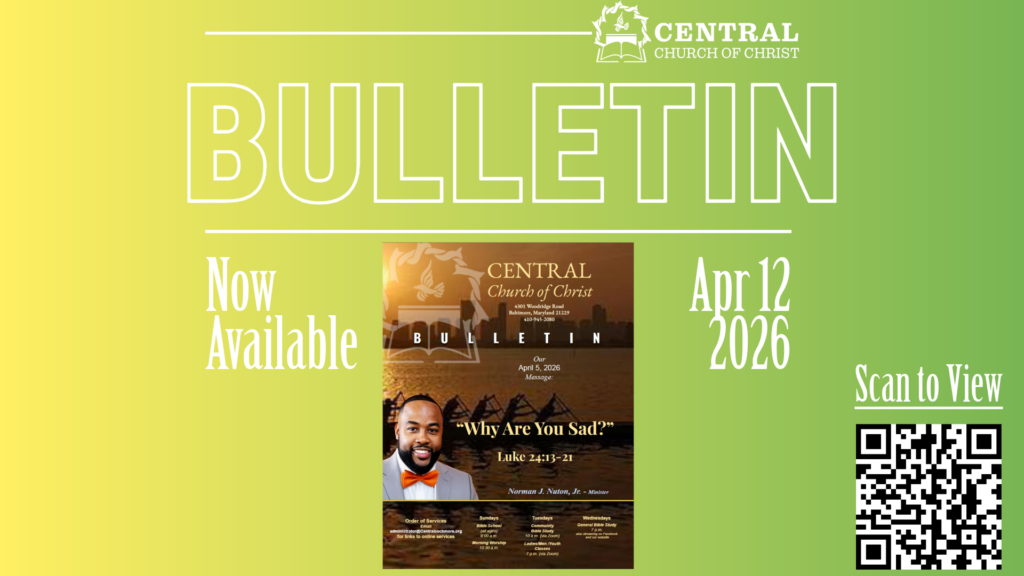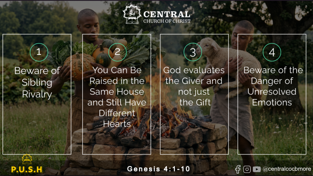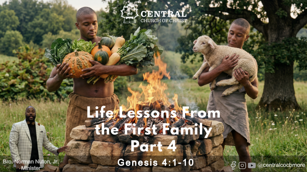 This Sunday Central’s minister, Bro. Norman Nuton, Jr., delivered a sermon derived from Genesis 4:1-10 and titled “Life Lessons From the First Family, Part 4”. If you missed it or want to listen in again, click the link below to view the recording of this week’s worship service on YouTube. For further edification, check out this week’s Sunday School lesson as well!
